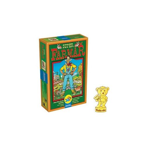 Jako správný superfarmář se zabýváš chovem domácích zvířat, neustále své stádo rozmnožuješ, ale pozor! Stádo obcházejí liška a vlk a tvá zvířata se pro ně mohou stát cennou kořistí… Hra Superfarmář má velmi zajímavou historii. Vznikla již za 2. světové války a jejím tvůrcem je významný matematik Karol Borsuk. Pravidla hry, která se opírají o zásady matematiky a logiky, nutí hráče počítat, předvídat, plánovat a kalkulovat s riziky. Tato jedinečná hra učí děti i rodiče strategickému myšlení. Superfarmář je rodinná desková hra pro 2 až 6 hráčů již od 7 let. Hráči za pomoci dvanáctistěnných kostek a směny získávají do svého stáda domácí zvířata – králíky, ovce, prasata, krávy a koně. Superfarmářem se stává ten, kdo jako první shromáždí stádo domácích zvířat, v němž bude alespoň jedno zvíře z každého druhu. Všechny hráčovy plány však mohou být zmařeny, nebude-li dost ostražitý! Kolem stáda se totiž potulují liška a vlk a hráčova zvířata se mohou stát jejich snadnou kořistí. Pravidla hry, která se opírají o zásady matematiky a logiky, nutí hráče počítat, předvídat, plánovat a kalkulovat s riziky. Tato jedinečná hra tak učí děti i rodiče strategickému myšlení. Oceněno 3. místem v kategorii Hra v soutěži HRAČKA ROKU 2009. Obsah balení: 2 různé dvanáctistěnné kostky128 kartiček s obrázky zvířattabulka výměnčeský a slovenský návod Hlavní vlastnosti: hra učí děti i rodiče strategickému myšlenírozvíjí slovní zásobu