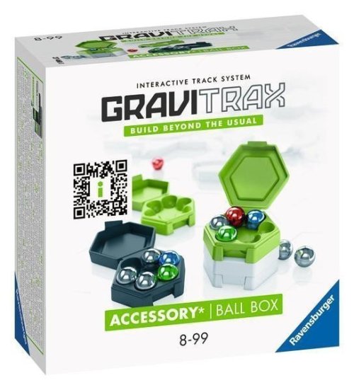 Příslušenství Úložný box na kuličky je nutností pro všechny nadšence do GraviTraxu! Čtyři boxy jsou navrženy v cool designu výškových kamenů GraviTrax, v barvách zelené, šedé a bílé. Dva z boxů jsou již naplněny celkem 12 stříbrnými a barevnými kuličkami GraviTrax, které rozjedou akci na dráze. Další dva boxy jsou ideální pro uložení kuliček, které již máte.
