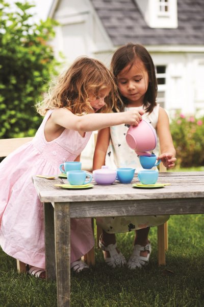 Čajový dýchánek pro čtyři. Dejte si zelený čaj s touto ekologickou hračkou od Green Toys. Budete pečovat nejen o duši, ale i o planetu. Čajová sada z pevného recyklovaného plastu se skládá ze 17 dílků, v balení najdete růžovou čajovou konvičku, cukřenku, 4 šálky, 4 podšálky a 4 lžičky. Hračka je vyrobená ze 100% recyklovaných materiálů, je netoxická, neobsahuje BPA, PVC, ftaláty, ani vnější nátěr. Vhodné pro mytí v myčce. Pokud hledáte plastové hračky na písek nebo do vody a zároveň Vám velmi záleží na bezpečnosti Vašich dětí, podívejte se na výrobky americké značky Green Toys. Vyrábí ekologické hračky, které jsou populární nejen v USA, firma se svými výrobky sklízí neuvěřitelné úspěchy po celém světě. Green Toys, to je především odpovědná výroba hraček z recyklovaného plastu láhví od mléka. Hlavní vlastnosti: bezpečný materiál bez obsahu BPA, PVC, ftalátůskládá se ze 17 částívyrobeno ze 100% recyklovaného plastu v USAvhodné do myčky