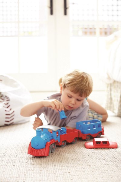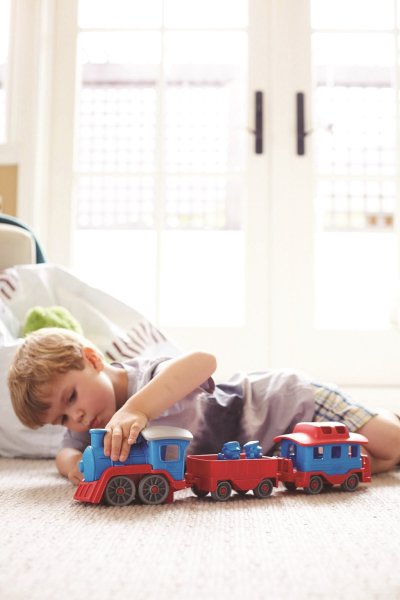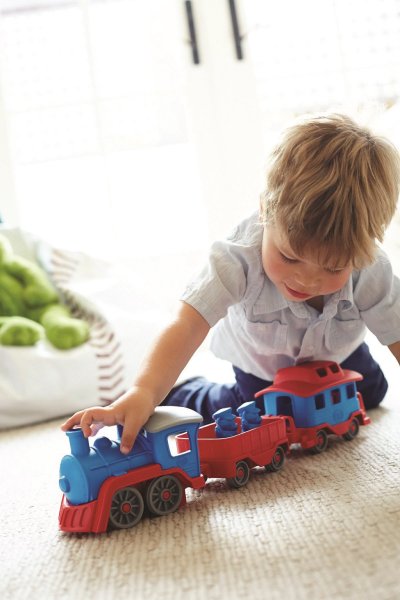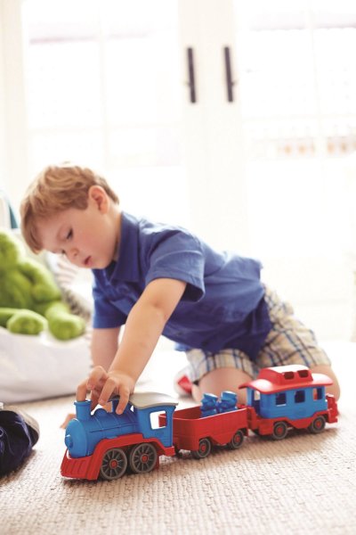 Nastupte si, do odjezdu vlaku zbývá 1 minuta. Tento robustní vláček je připraven na různá dobrodružství! Parní lokomotiva tahá dva vagónky, které lze jednoduše připojit i odpojit, můžete je tak používat samostatně. Celá souprava má krásnou kombinaci barev a je vyrobena ze 100% recyklovaného plastu. V setu najdete také dva medvědí průvodčí. Vlak nemá kovovou nápravu ani vnější nátěr. Green Toys vláček děti pobídne ke kreativní a představivé hře, je univerzální, lze si s ním hrát doma i venku. Hračka je netoxická, neobsahuje BPA, PVC, ftaláty, ani vnější nátěr. Vhodné pro mytí v myčce. Skládá se ze 4 dílků. Pokud hledáte plastové hračky na písek nebo do vody a zároveň Vám velmi záleží na bezpečnosti Vašich dětí, podívejte se na výrobky americké značky Green Toys. Vyrábí ekologické hračky, které jsou populární nejen v USA, firma se svými výrobky sklízí neuvěřitelné úspěchy po celém světě. Green Toys, to je především odpovědná výroba hraček z recyklovaného plastu láhví od mléka. Hlavní vlastnosti: skládá se ze 4 částípostavičky součástí baleníbezpečný materiál bez obsahu BPA, PVC, ftalátůvyrobeno ze 100% recyklovaného plastu v USA