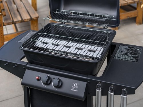 Velmi praktický a elegantní plynový gril KIMBERLEY se dvěma hořáky pro snadnou přípravu grilovaných pokrmů. Kvalitní provedení s poklopem umožňuje uzavřít spodní část grilu a díky tomu nemůže teplo tak rychle uniknout ven. Podobně jako v pečící troubě se pokrm propeče rovnoměrně ze všech stran. Gril má nahřívací mřížku vhodnou pro odkládání opečených potravin a nebo rozpékání pečiva. Gril můžete použít na grilování i bez víka. Pomocí dvou plastových koleček dopravíte gril snadno na potřebné místo na vaší zahradě či terase. Komfort vám dopřejí i dvě odkládací plochy se třemi háčky. Gril má teploměr v poklopu a přední odkládací košík. Gril se zapaluje pomocí piezo zapalování.