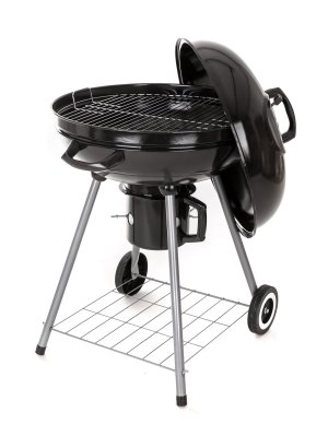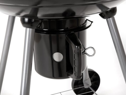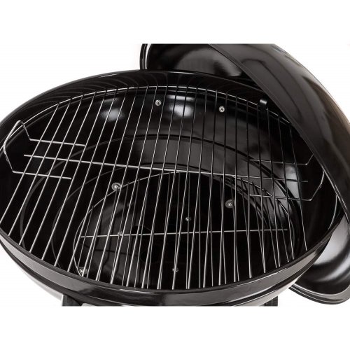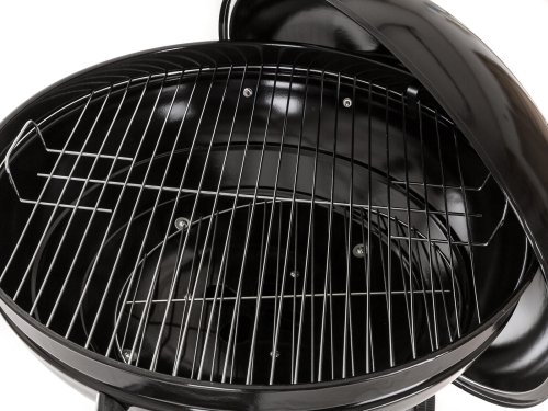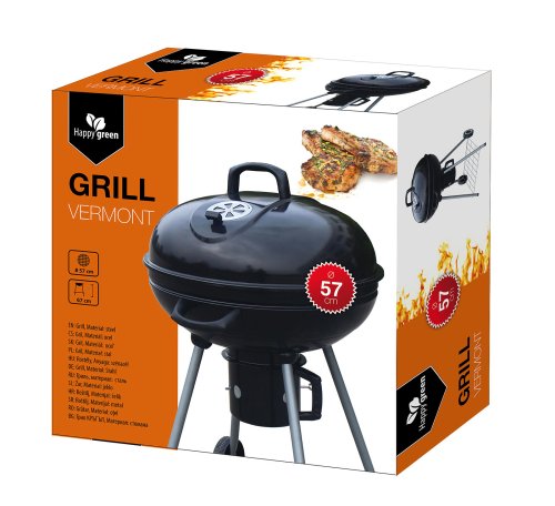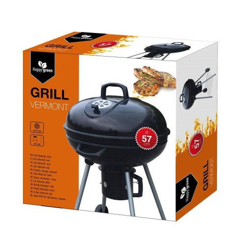 Gril VERMOUNT má smaltované ohniště (černé barvy), chromovaný rošt, nohy z nerezové oceli, pozinkovaný rošt na uhlí a vyjímatelný externí popelník. Pro snadnější manipulaci je gril opatřeny dvěmi plastovimý kolečky. Rozměry: 60 x 57 x 82 cm, průměr ohniště 57 cm, výška ohniště 67 cm.