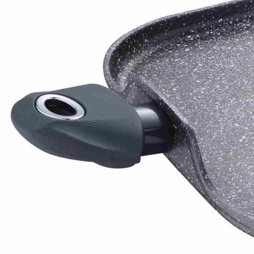 •Rozměry: 35,5 x 28,3 x 1,3 cm • Vyrobeno z prémiového kovaného hliníku pro lepší odolnost proti korozi a opotřebení. •Vnitřek grilu je vybaven nepřilnavým povrchem Marble, který zabraňuje přichycení jídla a zároveň zlepšuje vaření. •Gril má indukční základnu, která umožňuje dobré rozložení tepla po celém povrchu. Tato základna je kompatibilní se všemi varnými deskami na trhu, včetně indukce. • Šedé rukojeti s povrchovou úpravou Soft Touch a chromovou vložkou. • Možno mýt v myčce.Gril vyrobený z vysoce kvalitního kovaného hliníku, který rovnoměrně zlepšuje distribuci tepla a zabraňuje vzniku horkých míst. Bez obsahu PFOA, olova nebo kadmia. Vnitřní i vnější část kusu má mramorový povlak, který poskytuje kusu větší odolnost a odolnost proti poškrábání a zároveň umožňuje čištění pánve téměř bez námahy. Decentní a profesionální povrchová úprava a díky vnitřním žebrům připravíte maso a ryby jako na grilu. Základna grilu je opatřena indukčním dnem výjimečné tloušťky 3 mm, kompatibilním se všemi sporáky na trhu, včetně indukčních. Rukojeti v šedém provedení s hadím efektem mají technologii „soft touch“, která vám umožní pohodlně a bezpečně uchopit.
