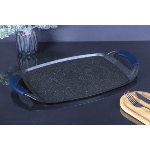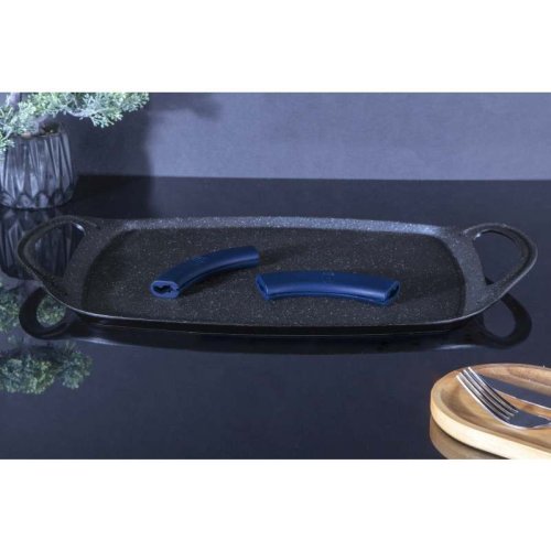 - Materiál: kovaný hliník- Velikost: 47*29 cm- Barva: akvamarínová- 2 KS TEPELNĚ ODOLNÉ SILIKONOVÉ RUKOJETI - Třívrstvý mramorový povlak- Odnímatelné silikonové rukojeti- Na bázi turboindukce- Vhodné …