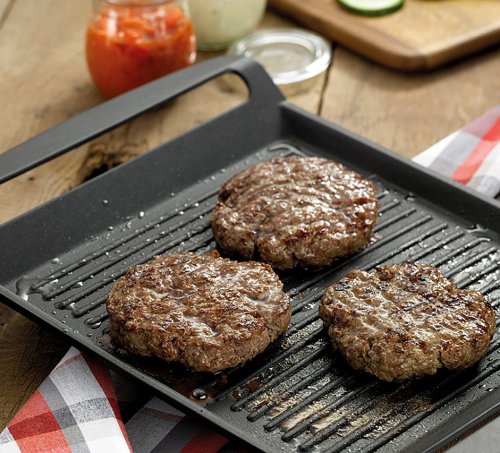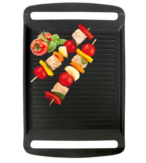 - grilovací deska je ideální k přípravě zeleniny, masa, uzenin, steaků, burgerů nebo ryb, následně lze jakékoliv suroviny zapékat v troubě a připravit tak celý oběd nebo večeři na jednom kusu nádobí- …