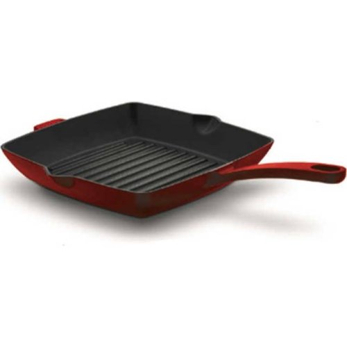 Hranatá grilovací pánev z litiny je opatřena praktickým mřížkovým dnem. Rozměry 26 x 26 cm.