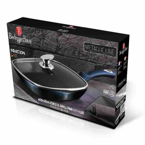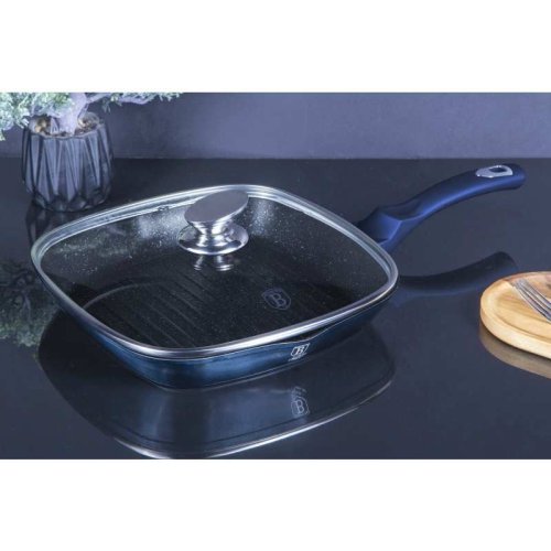 Grilovací pánev s mramorovým povrchem a poklicí 28 cm Aquamarine Metallic Line BH-7028