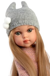 Panenka bez zvuku s vinylovým tělem a bohatými dlouhými vlásky až ke kotníkům, které jsou "rostlé" po celé hlavě a dají se česat. Ruce a nohy jsou k tělu přichyceny kloubem. Panenka je polohovací a může i sedět. Velikost panenky 34 cm. Ručně vyrobeno ve Španělsku, baleno v dárkové krabici. Doporučený věk od 3 let.