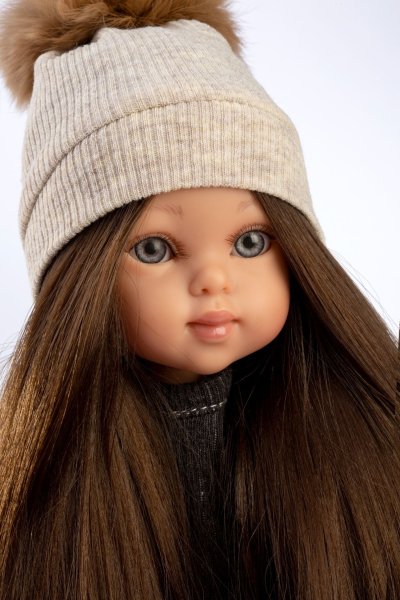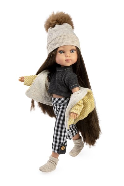 Panenka bez zvuku s vinylovým tělem a bohatými dlouhými vlásky až ke kotníkům, které jsou "rostlé" po celé hlavě a dají se česat. Ruce a nohy jsou k tělu přichyceny kloubem. Panenka je polohovací a může i sedět. Velikost panenky 34 cm. Ručně vyrobeno ve Španělsku, baleno v dárkové krabici. Doporučený věk od 3 let.