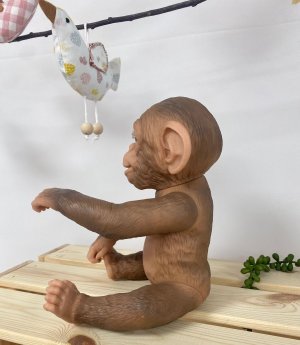 Veselé a roztomilé opičí miminko bez zvuku s vinylovým tělem s možností koupání, na kterém je zachycen věrohodně každý detail tohoto zvířecího mláďátka včetně různých záhybů, kromě pohlaví. Opičku lze koupat, ale je potřeba dát pozor, aby se jí nenamočily řasy. Odlepené řasy nejsou pak důvodem k reklamaci. Ruce a nohy jsou k tělu přichycené kloubem. Opičí miminko je polohovací a může i sedět nebo se dá pověsit za ruce nebo nohy. Velikost 32 cm. Ručně vyrobeno ve Španělsku, baleno v dárkové krabici. Doporučený věk od 3 let.