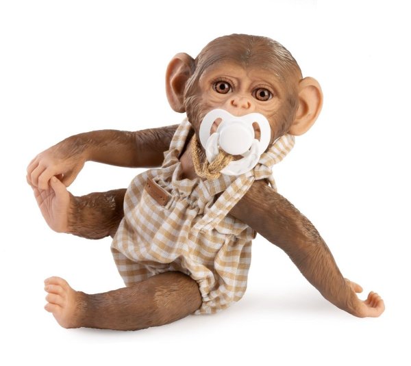 2dílný set: 1 kus oblečení a dudlík pro opičku miminko REBORN velikosti 32 cm. Vyrobeno ručně ve Španělsku, baleno v igelitovém obalu na kartonové podložce. Doporučený věk od 3 let.
