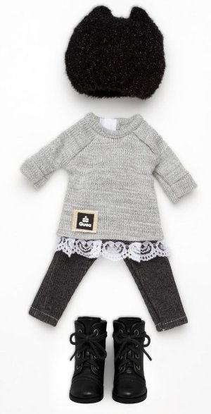 4dílný set: 3 kusy oblečení a botičky pro panenku Penelope velikosti 34 cm.