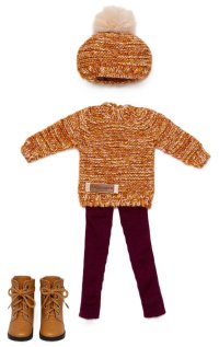 4dílný set: 3 kusy oblečení a botičky pro panenku Penelope velikosti 34 cm.