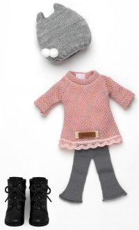 4dílný set: 3 kusy oblečení a botičky pro panenku Penelope velikosti 34 cm. Vyrobeno ručně ve Španělsku, baleno v igelitovém obalu na kartonové podložce. Doporučený věk od 3 let.