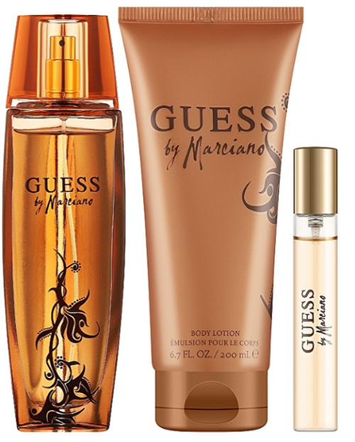 Guess By Marciano je svěží a ženská květinově-ovocná vůně, která okouzlí svou lehkostí i smyslností. Úvod tvoří osvěžující tóny grapefruitu, curacaa a jemného kardamomu, jež okamžitě probudí smysly. V srdci se rozvíjejí něžné květinové akordy pivoňky, jasmínu a zimolezu, dodávající kompozici eleganci a sofistikovanou hloubku. Základ tvoří pižmo a vanilka, které zanechávají dlouhotrvající, hřejivou a smyslnou stopu. Vůně Guess By Marciano byla uvedena na trh v roce 2007 a je ideální pro ženy, které chtějí vyzařovat svěžest, ženskost a nenucenou eleganci. Součástí sady je: