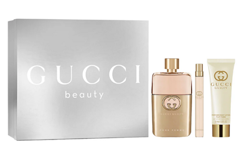 Guilty Eau De Parfum z kolekce Gucci Guilty je orientálně-květinová vůně pro ženy. Citrusovou hlavu doplňují tóny růžového pepře, v čistě květinovém srdci ucitíte růži, šeřík, pelargonii a fialku. Kompozici uzavírá jednoduchý základ v podobě hřejivé ambry a pačuli. Na trh byla uvedena v roce 2019.