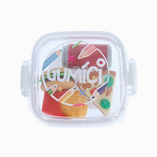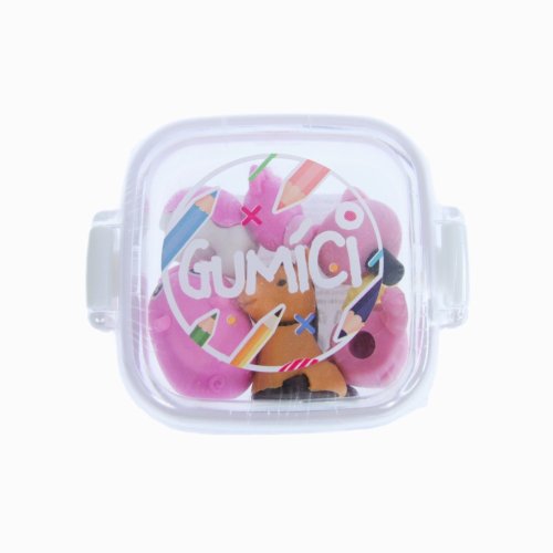 Gumíci – to jsou veselé, tvarované gumy, které potěší každého školáka i školačku. Set barevných, tvarovaných, školních gum je k dispozici ve 4 variantách, na výběr jsou zvířata i tvary jídla a pití. V každém praktickém balení jsou 4 ks gum. Vhodné pro děti od 3 let.