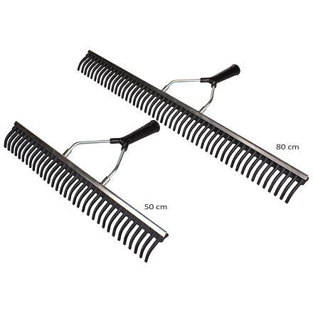 Hrábě určené pro šetrné odstranění spadaného listí nebo odpadků z tenisových kurtů. Vyrobeny z kvalitní gumy, oceli a PVC. Při použití těchto hrábí nedochází k narušení samotného povrchu hřiště a to tak zůstane neponičené. Hrábě nabízíme ve dvou šířkách (50 a 75 cm). Dodávány jsou pouze samostatné hrábě bez násady.