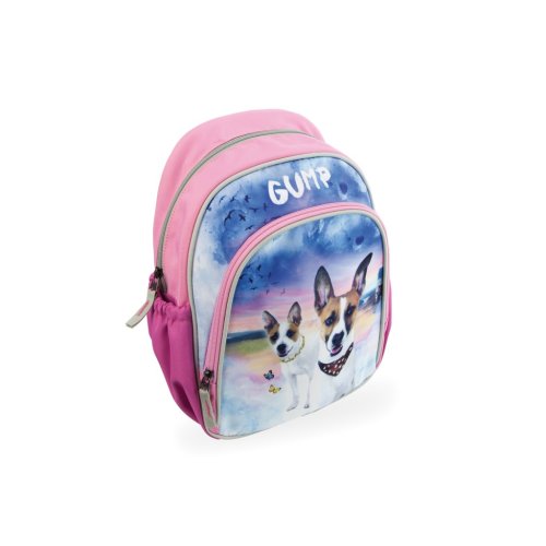 Batůžek s motivem GUMP bude skvělým doplňkem každé školačky. Batůžek má praktické kapsy na zip i postranní kapsy na drobnosti či pití.