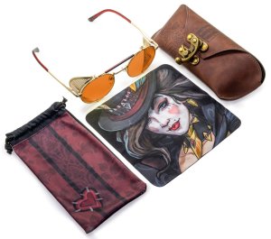 Každé brýle jsou dodávány s kompletní sběratelskou sadou včetně prémiového pouzdra z umělé kůže s uzávěrem inspirovaným trezorem, mikrovláknového pouzdra s motivy Borderlands a čisticího hadříku s portrétem Moxxi.