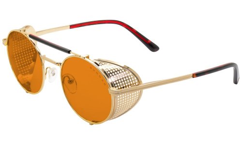 Patentovaná technologie GUNNAR Focus s povrchovou úpravou G-Shield Plus představuje štít, který chrání oči před únavou bez ohledu na délku aktivit. Kulatý rám z nerezové oceli ve zlatém provedení říznutý steampunkovým stylem vytváří originální design, který se běžně nevidí – snad jen ve hrách. Odnímatelné boční štítky vám umožní upravit vzhled do postavy Moxxi Takže ideální třeba na cosplay? Díky flexibilním pantům sedí jako ulité na každé velikosti hlavy.