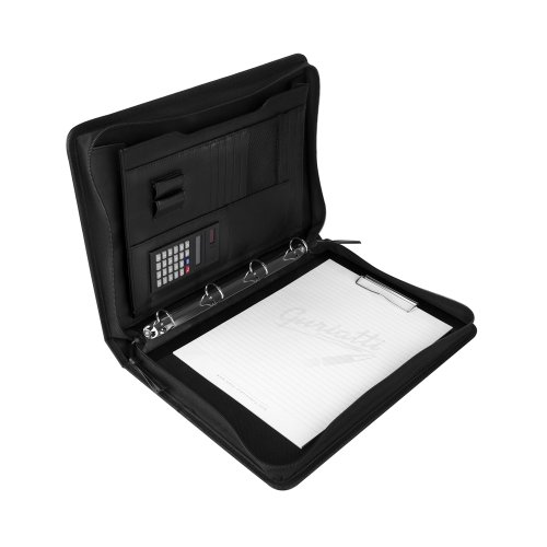 Tato diplomatka je vybavena 4kroužkovým pořadačem, který umožňuje snadné uspořádání vašich dokumentů. Součástí je i místo pro blok s pevným klipem na uchycení, takže si můžete dělat poznámky kdykoli a kdekoli. Vestavěná kalkulačka vám ušetří čas při rychlých výpočtech, a praktické kapsy na dokumenty, vizitky a drobnosti zajistí, že budete mít vše na správném místě.