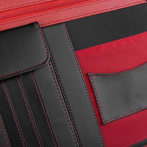 Guriatti MILO je ideální volbou pro ty, kteří hledají dokonalou rovnováhu mezi funkčností, stylem a elegancí. Červené detaily této diplomatce přidávají energii, zatímco její promyšlený design vám usnadní pracovní den. S touto diplomatkou budete nejen organizovaní, ale také vyniknete v každé situaci. Je vyrobená z kvalitní ekologické kůže, černého PU a PVC, což dodá vašemu pracovnímu stylu nádech elegance a modernosti.