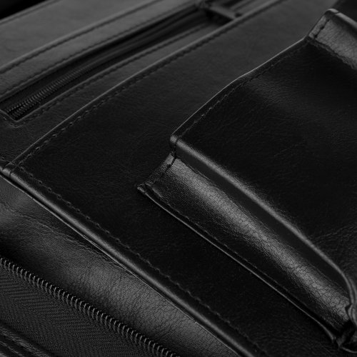 Diplomatka je vyrobena z kvalitní ekologické kůže v černé barvě. Materiál nejen dobře vypadá, ale je také snadno čistitelný. Zapínání na zip zajišťuje bezpečné uložení všech vašich dokumentů a příslušenství.