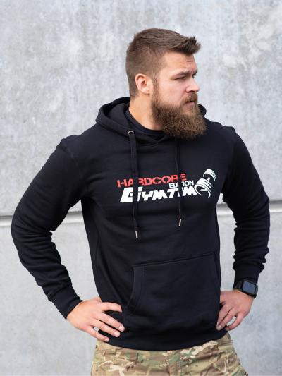 Pánská mikina z kolekce HARDCORE edition s potiskem "BENČUJ, DŘEPUJ, TAHEJ NEBO BUDEŠ MALEJ".