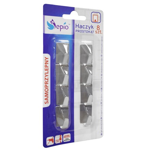 Samolepicí háčky z nerezové oceli. Upevňují se oboustrannou páskou, takže se snadno instalují a nepoškozují dlaždice. Vydrží zatížení až 2 kg.