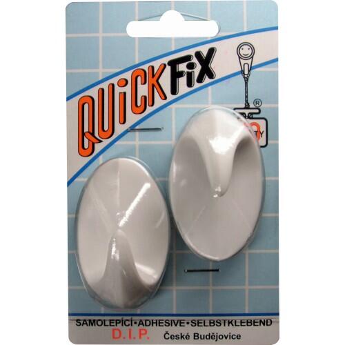 Plastový závěsný háček. Jeho součástí je samolepicí páska, kterou jednoduše přilepíte háček na stěnu. Je vhodný spíše na nepórovité povrchy jako dlaždice, sklo, plast nebo laminát. Využití nalezne především v koupelně, předsíni nebo kuchyni.