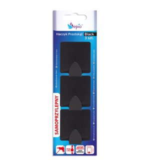 Háček samolepicí, obdélníkový, ocel ČER (3 ks). rozměry (š x v): 3,5 x 4 cm materiál: ocel barva: černá balení: 3 ks Obdélníkový samolepicí háček.