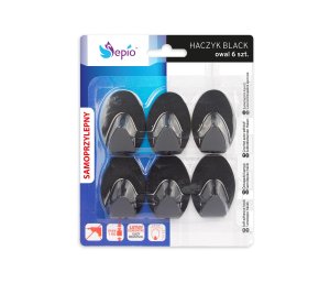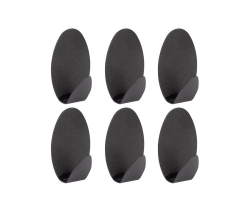 Háček samolepicí, oválný, ocel ČER (6 ks). rozměry (š x v): 3,6 x 5,3 cm materiál: ocel barva: černá balení: 6 ks Oválný samolepicí háček.