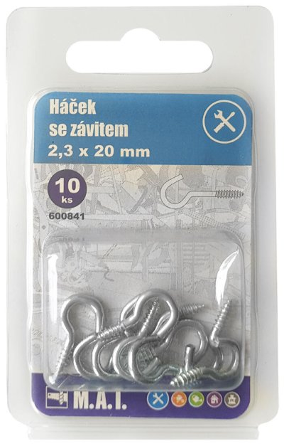 Háček se závitem 40 x 2,8 mm pro uchycení předmětů a břemen do různých materiálů.
