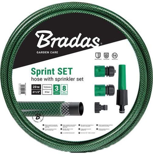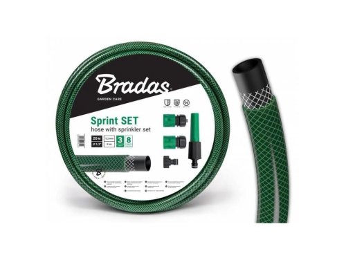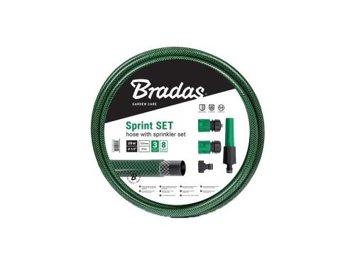 Vyztužená zahradní hadice SPRINT 1/2" z měkčeného PVC, která se skládá ze 3 vrstev s příslušenstvím.