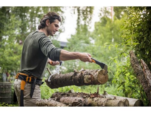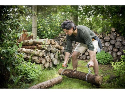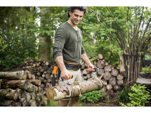 Hák na klády určený pro zvedání a přenášení polen a klád s plastovou, pohodlně uchopitelnou rukojetí tlumící nárazy a plastovým pouzdrem pro snadné přenášení na pracovním opasku. Je vhodný pro asistenci při kácení. Šířka: 193 mm, délka 303 mm, váha: 610 g. Původní Fiskars číslo: 126021. Označení: LH4