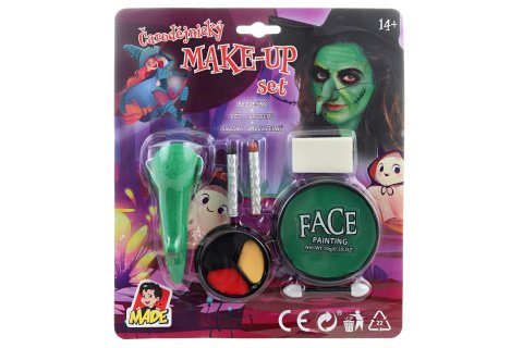 Halloweenský doplněk - čarodějnický nos+make-up. Výrobek je bezpečný, snadno omyvatelný, bez parabenu. Baleno na kartě. Rozměry balení cca 20x23x5 cm. Věk 14+