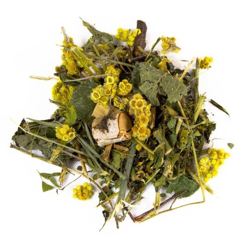 Složení: březové větvičky, jetel, vojtěška, kopřiva, jablko, lipový list, nať kopru, máta, meduňka, smil (smile), levandule.