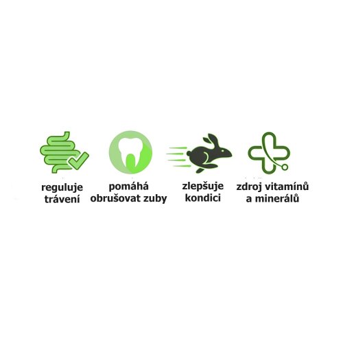 Vojtěška a jetel usnadňují králíkům odstraňování toxinů, odkyselují organismus, čistí krev a játra. Vojtěška také obnovuje a udržuje normální hladinu cukru v krvi.