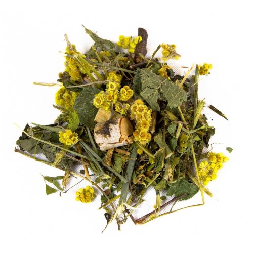 Složení: březové větvičky, jetel, vojtěška, kopřiva, jablko, lipový list, nať kopru, máta, meduňka, helichrysum, levandule.