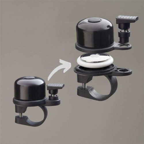 zvonek na jízdní kolo s bezpečným a nenápadným prostorem pro AirTag; ideální při případné ztrátě/krádeži kola