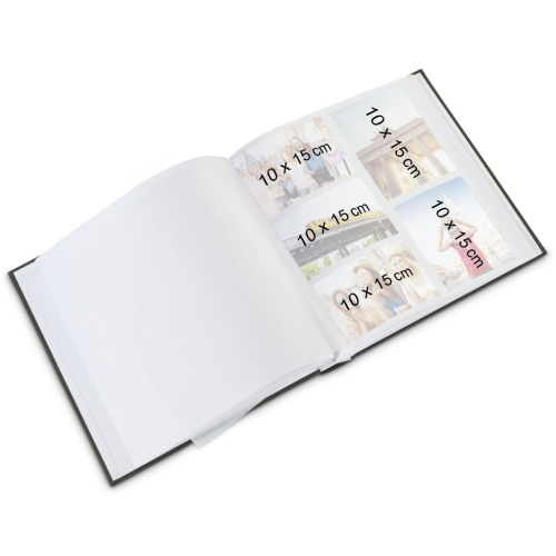 - pro lepení fotografií - pro 480 fotografií formátu 10x15 cm - desky z PU materiálu – umělá kůže - zlatý rámeček na přední straně desek a zlaté linky na hřbetu - bílé vnitřní listy, pergamenový papír …