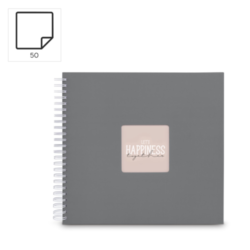 Hama album klasické spirálové FINE ART 36x32 cm, 50 stran, kamenná šedá, bílé listy