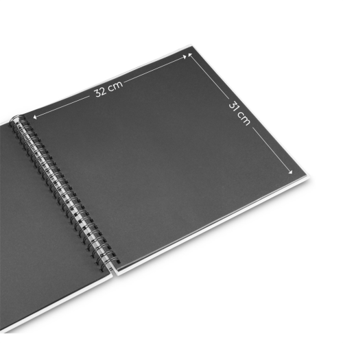 černé vnitřní listy poskytují prostor pro vaše příběhy a vzpomínky (fotografie, kresby, texty, pohlednice, vstupenky …)