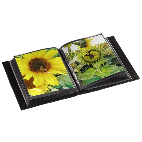 - album na zasouvání fotografií - pro 100 fotografií formátu 10x15 cm - povrch z umělé kůže s jemnou strukturou a černým prošíváním - stříbrné kovové rohy dodávají albu obchodní vzhled a chrání před …
