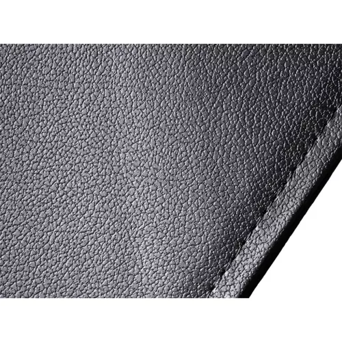 • povrch z umělé kůže s jemnou strukturou a černým prošíváním
