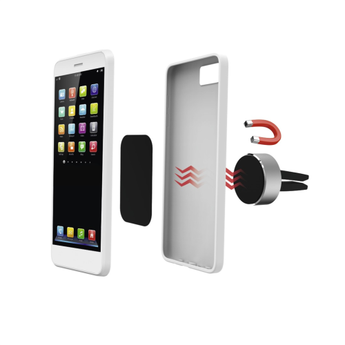 • magnetický držák pro bezpečné připevnění telefonu na větrací mřížku ve vozidle