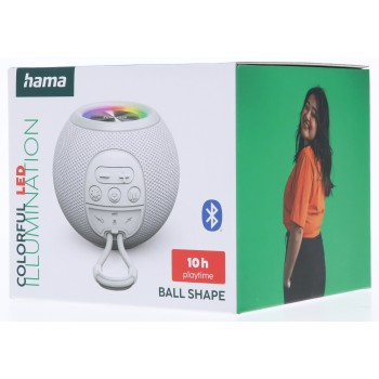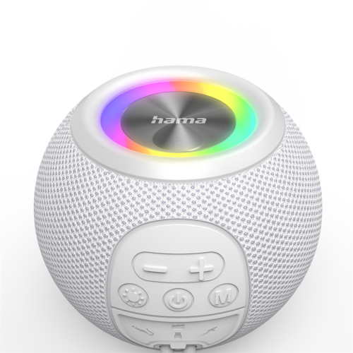 Hama Ball, Bluetooth reproduktor, 5 W, LED podsvícení, AUX-in, USB-A, microSD slot, bílý