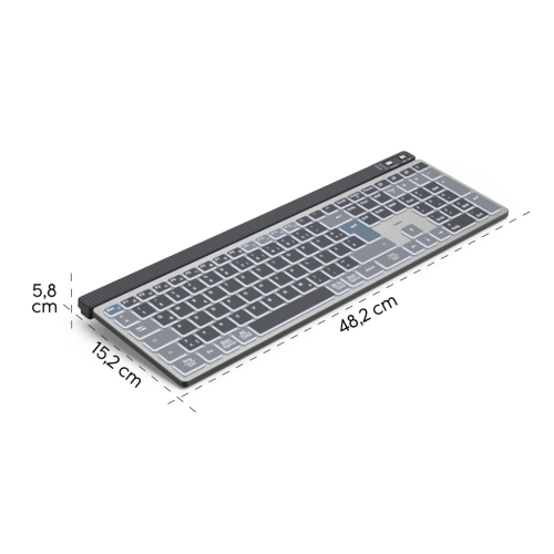 - moderní, plnoformátová bezdrátová klávesnice pro více zařízení - multi-device, možnost ovládání 3 zařízení: 1x bezdrátové USB, 2x Bluetooth - můžete připojit například počítač, tablet a smartphone …