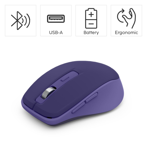 • 7tlačítková bezdrátová optická myš s volitelným připojením na tři zařízení: 1x bezdrátový USB přijímač a 2xBluetooth